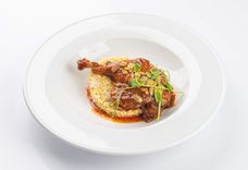 Утиная ножка со сливочным булгуром и белыми грибами