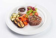 Филе миньон с овощами гриль и соусом Нью-Йорк
