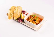 223 г • Креветки королевские, чеснок, паприка, вино белое, лимон, микс-салат, томат черри, чиабатта белая, кресс-салат