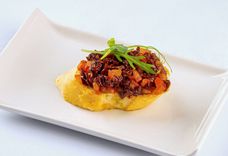 383 г • Говяжьи щёчки, соус из чернослива, картофель черри, шампиньоны, томат черри, шпинат свежий, чеснок, кресс-салат