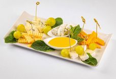 220 г • Мягкий домашний сыр, Сыр Камамбер, сыр Дор Блю, сыр Чеддер, сыр Джюгас, виноград, натуральный мёд